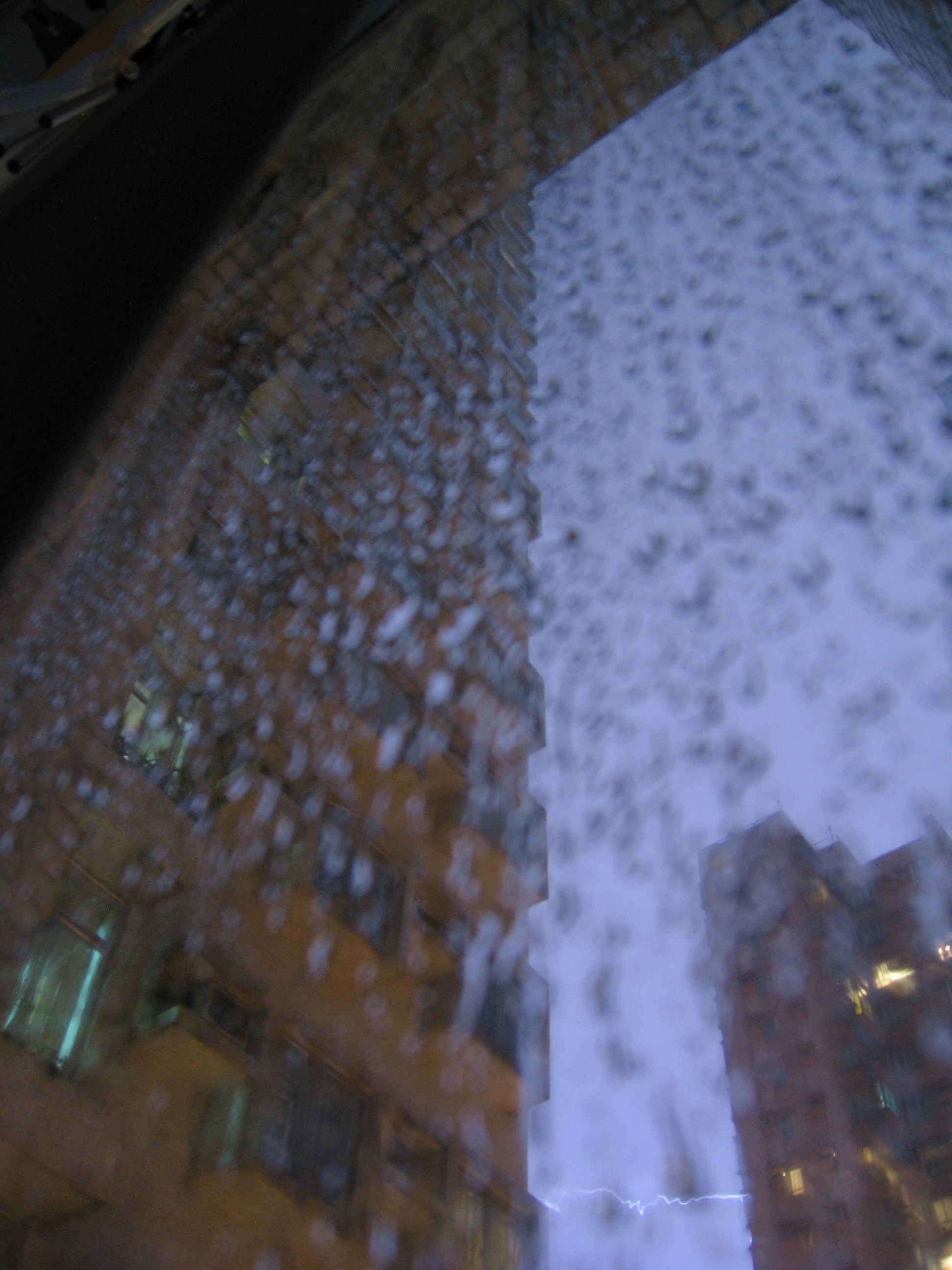 昨夜的閃電 圖片 1 昨夜雷雨交加,閃電大作,拿出相機,擺好陣勢,一心「捉電」。 影了十多二十幅,失望地沒有半分斬獲,只有放棄。 幸好沒有即時把所有拍下的東西刪除掉,因為直至剛才從記憶卡把照片下載到電腦,才赫然發現走漏了眼,原來有以下這幅,雖然只影得鳳毛麟角,但都好過「食白果」。終於體會到現今的相機之LCD愈出愈大真的有其道理。