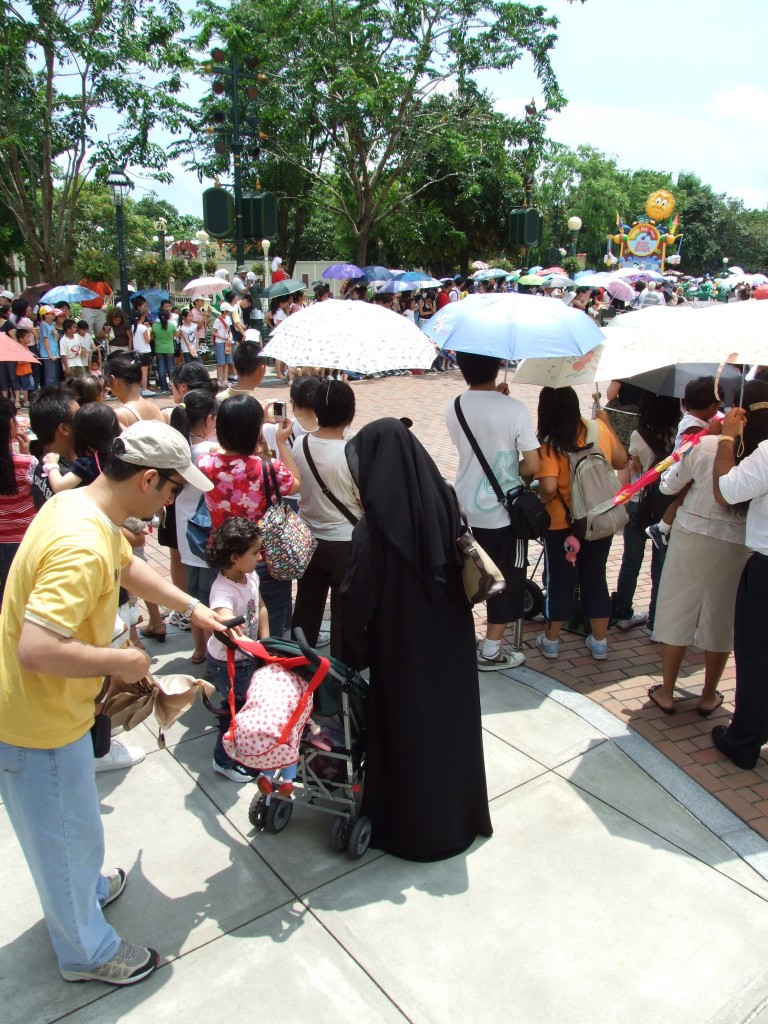 翳焗天氣,遊迪士尼,熱得要死.幾想搣甩埋層皮。但見圖中這位穆斯林女士,用黑紗由頭罩到落尾,問你服未?