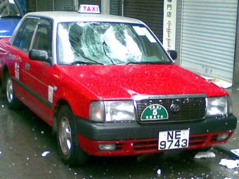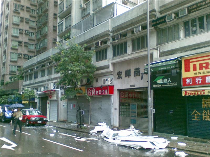 巨爵於一日內由熱帶低氣壓迅速增強成為颱風,其威力也真非同小可。今早出門上班,只見街頭不知從何處塌下了一堆毀折了的支架簷篷和一部空調,一部停泊在附近之的士的風防玻璃也給砸碎了。